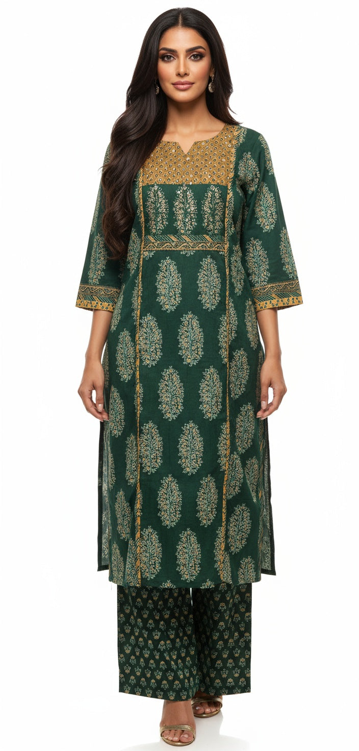 بنجابي قطني من قطعتين عملي وخفيف لعمال المنزل