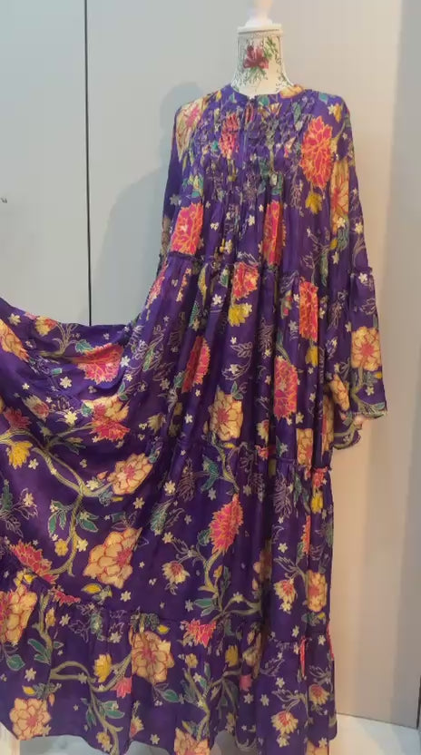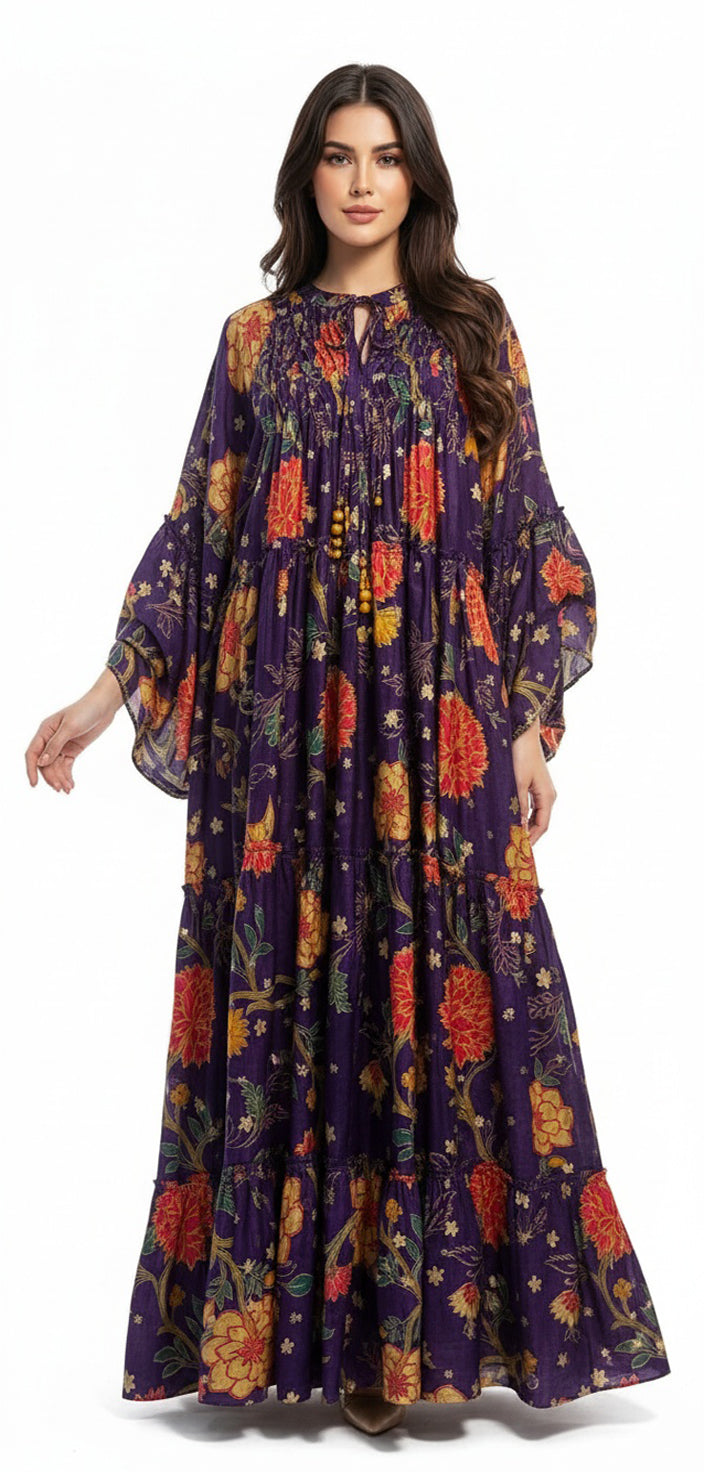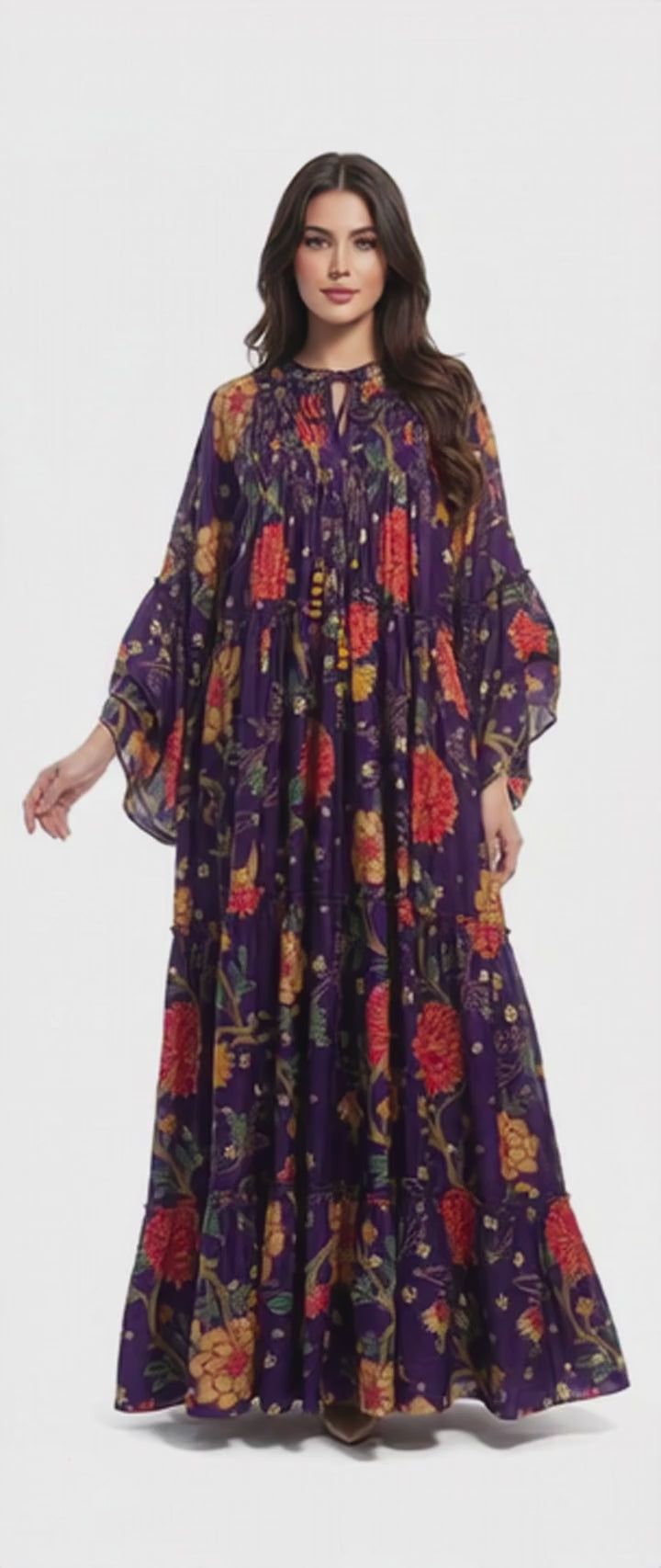 جلابيه حرير جاكر خيوط مع الزري و تطريز السموكنج يدوي للسيدات مع تفاصيل صغيرة من الخلف والامام تم خياطته ب 6 امتار راقي جدا