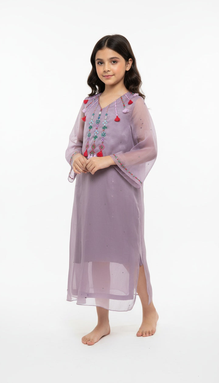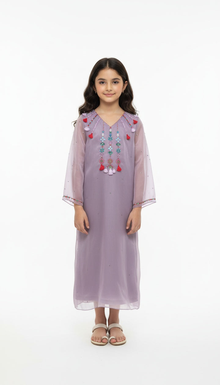 دراعه من الارجنزا البنفسجي المشغولية بخيوط واحجار الشك صنعت بدقه واتقان مع منثور الشك على كامل الدرعه