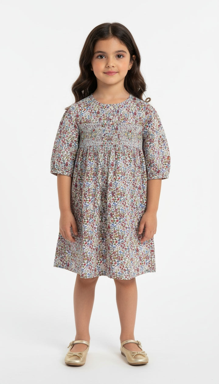فستان قطني مع تطريز السموكنج انيق جدا للصيف