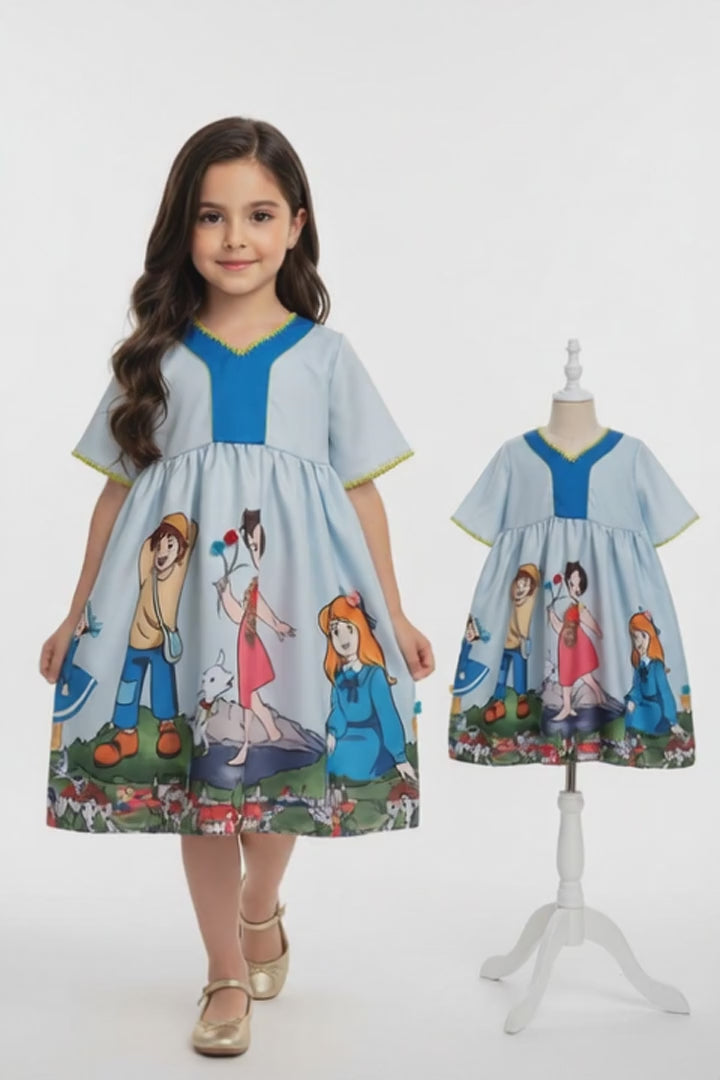 فستان هايدي من القطن الكريب ناعم جدًا ومثالي للمنزل مع تطريز كوروسيه على الصدر