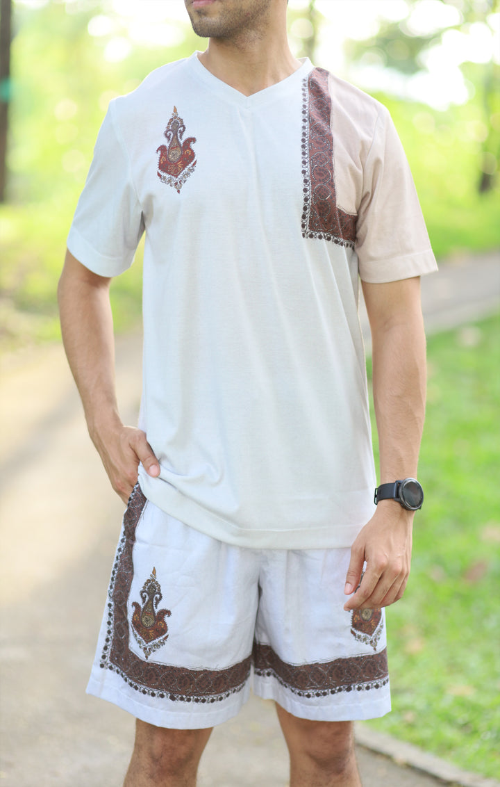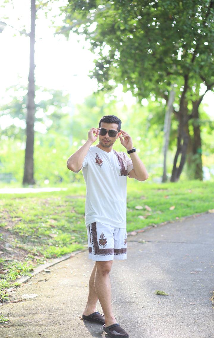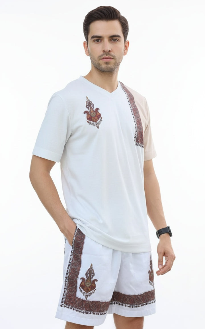 تيشيرت وشورت من القطن الخالص جيرسي خليجي الشرف الشال مقاس موحد ميديم
