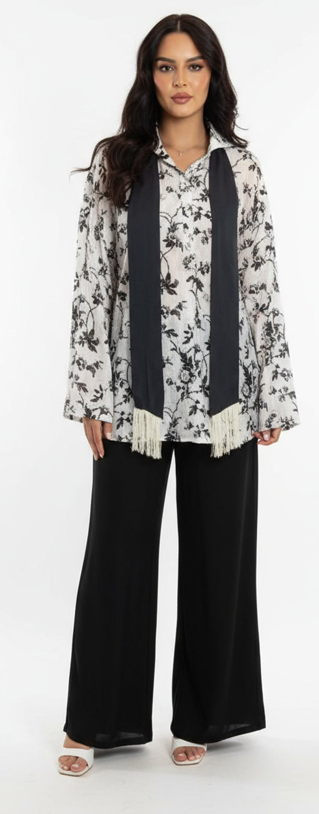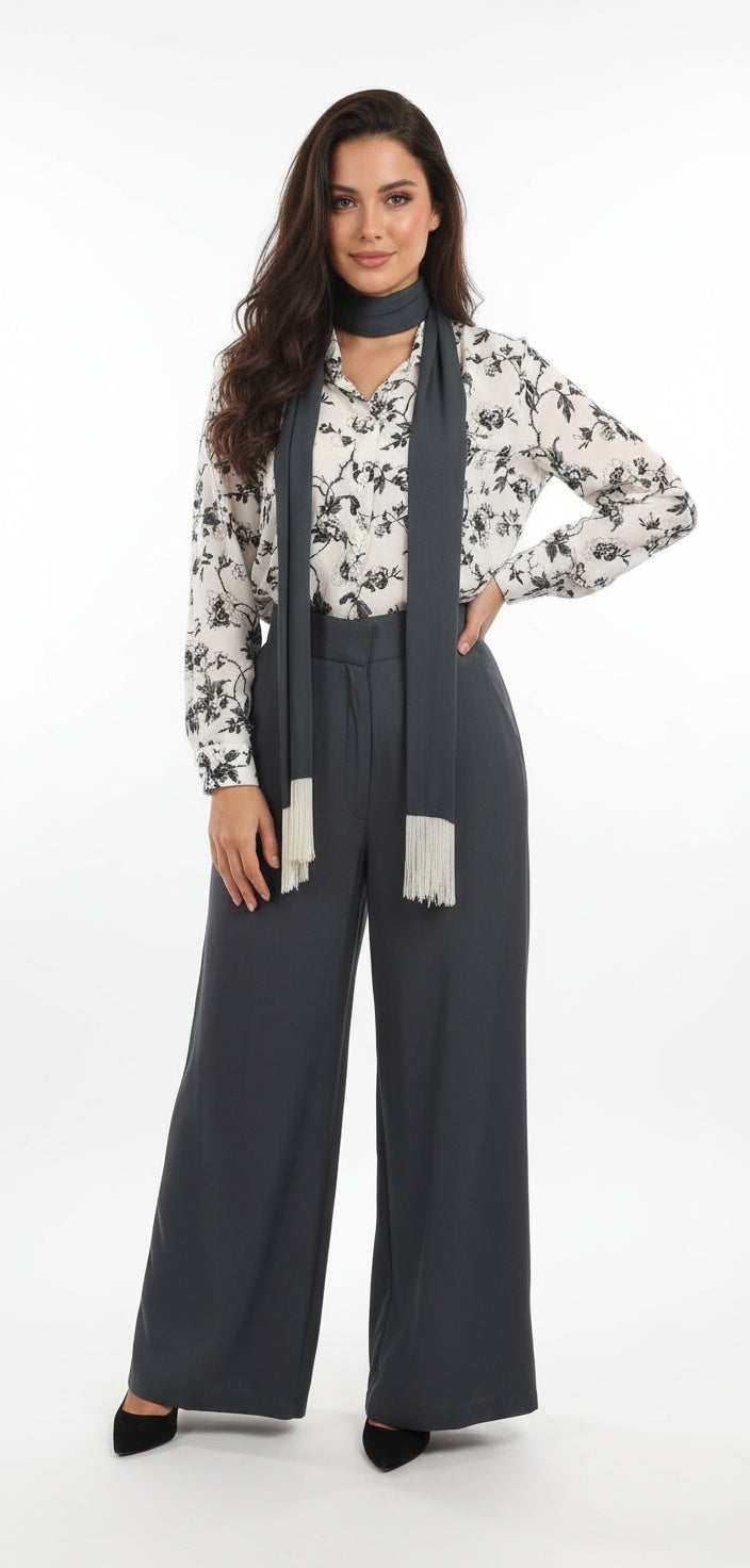 تايور بنطلون وبلوزه وسكارف تم شك اطرافه  من قماش الحرير الياباني المطعم بالقطن عملي  ومناسب للسفر او المناسبات العائليه