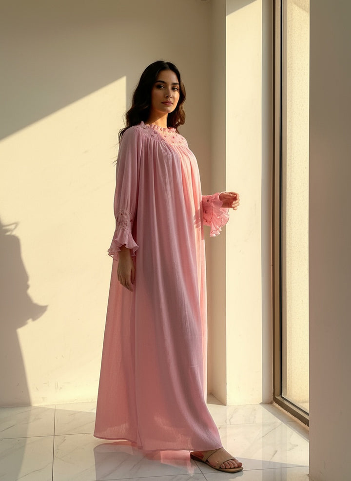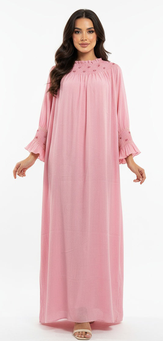 جلابيه من القطن الخالص مع تطريز سموكنج يدوي يمكن تخصيص الالوان