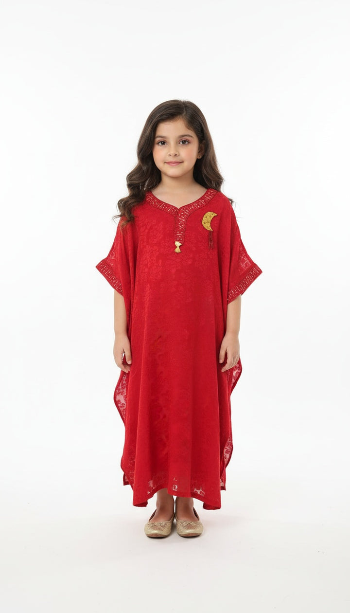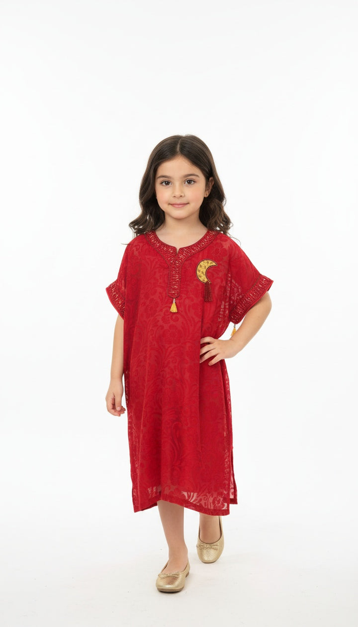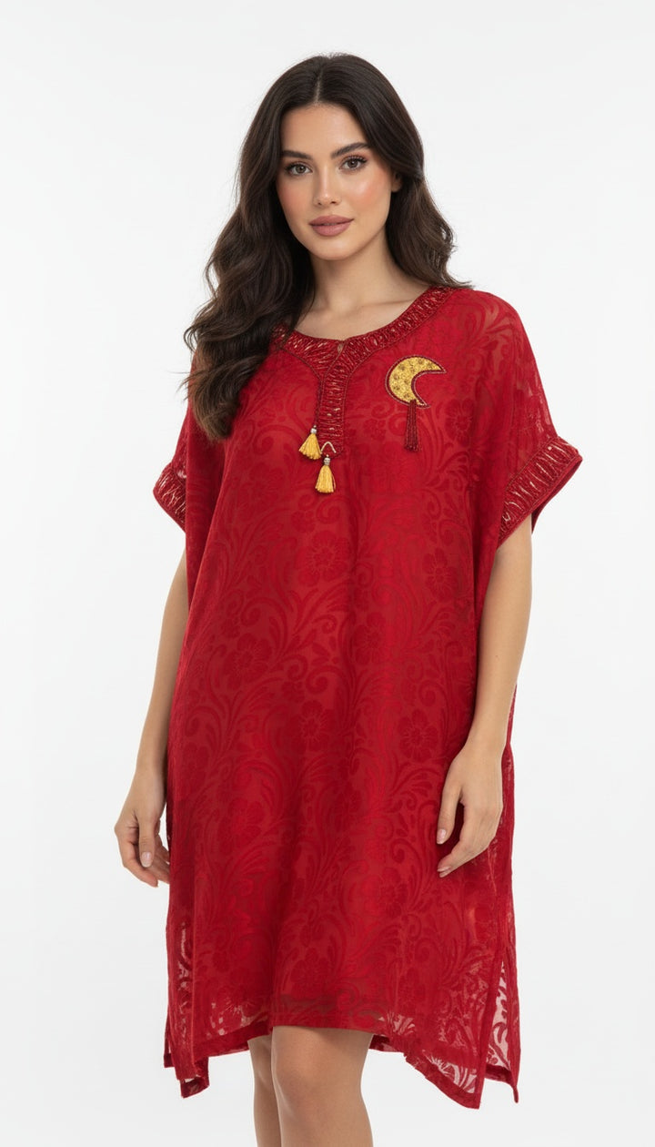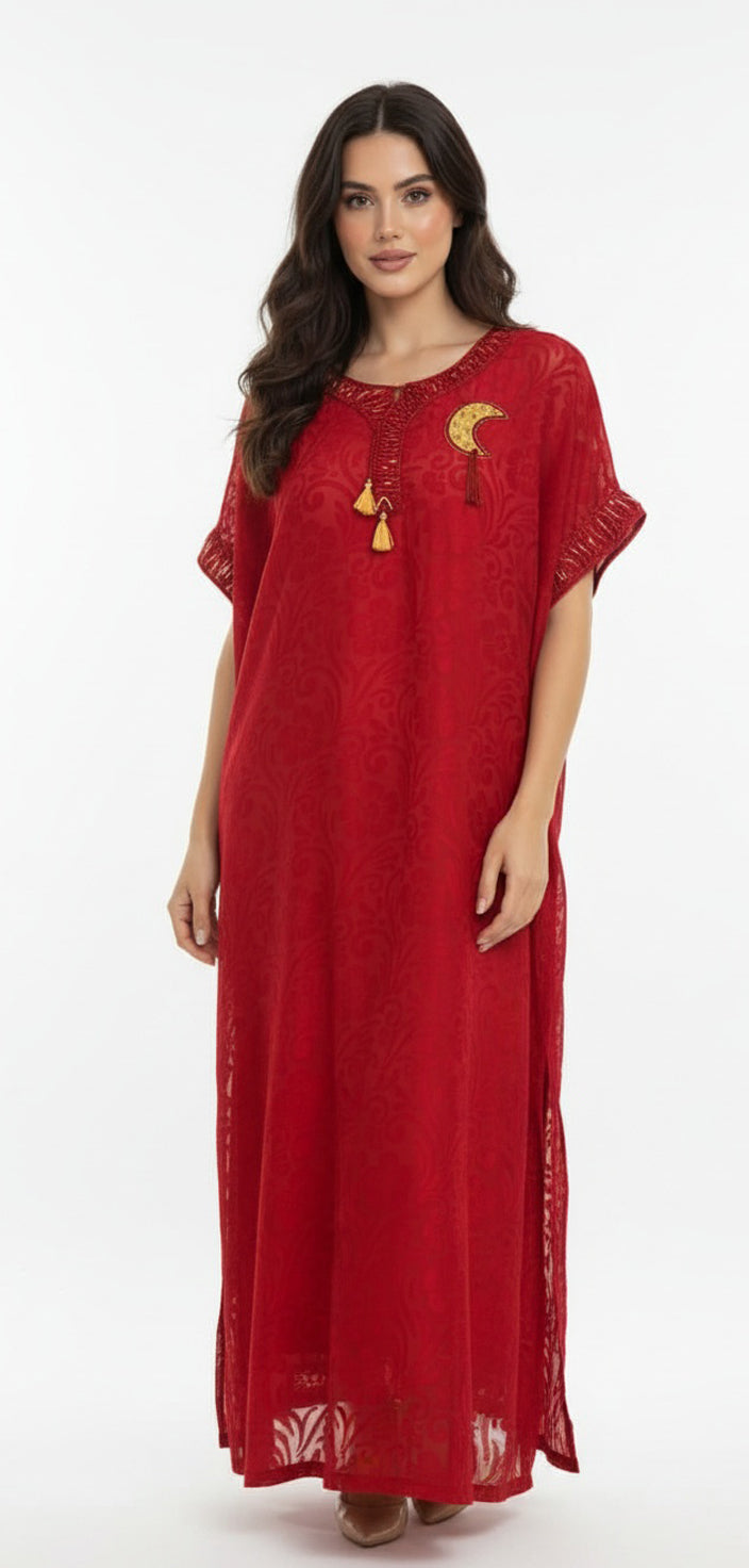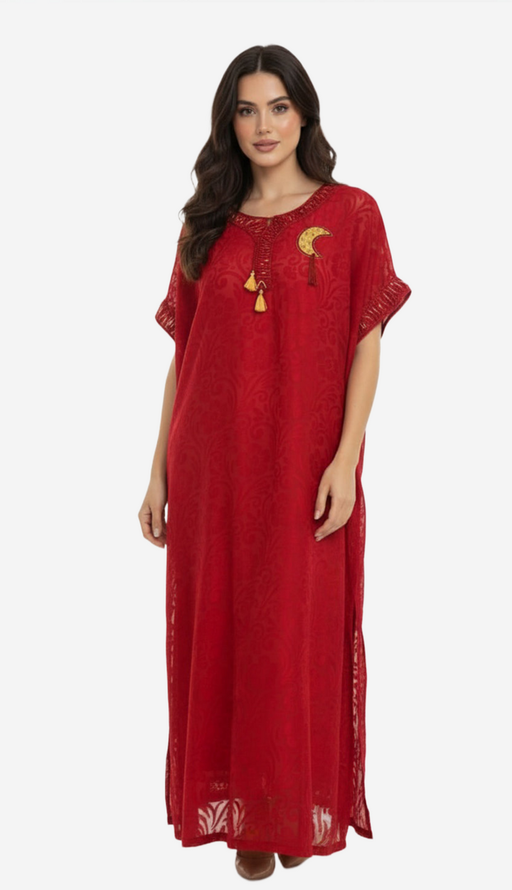 جلابيه فراشه من حرير الشيفون مع تطريز يدوي لكامل اطراف الجلابيه واكسسوارات جميله على الصدر