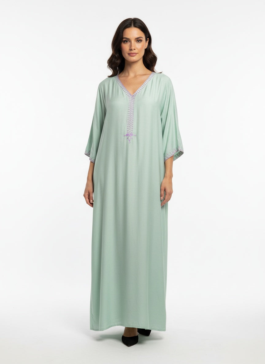 جلابيه من قماش قطني بارد جدا مع تطريز يدوي من الخيوط البنفسجيه