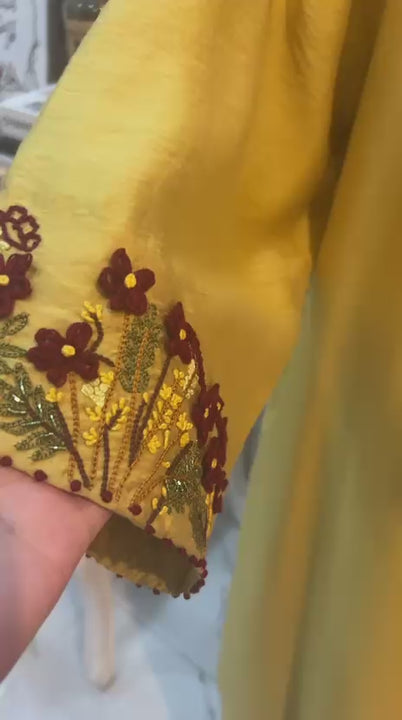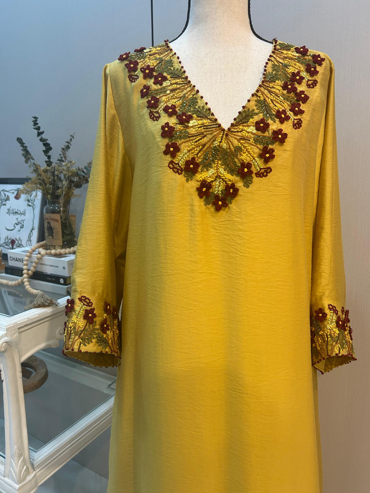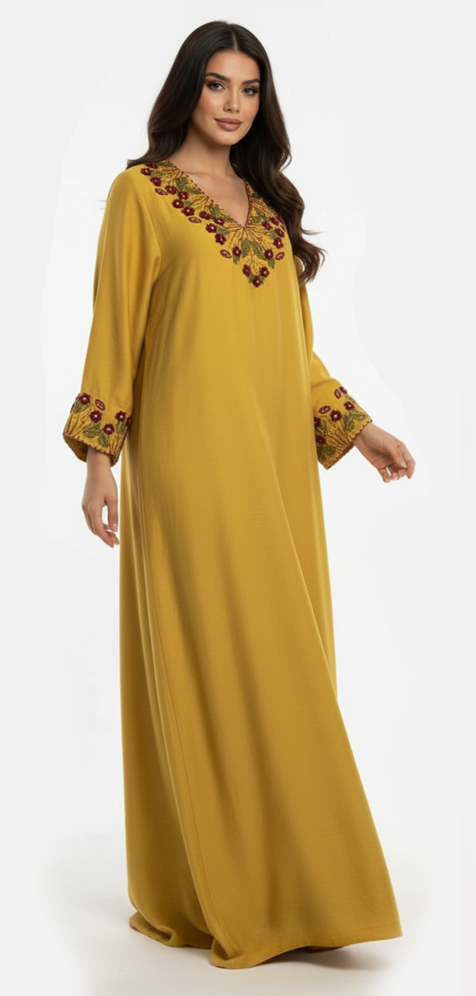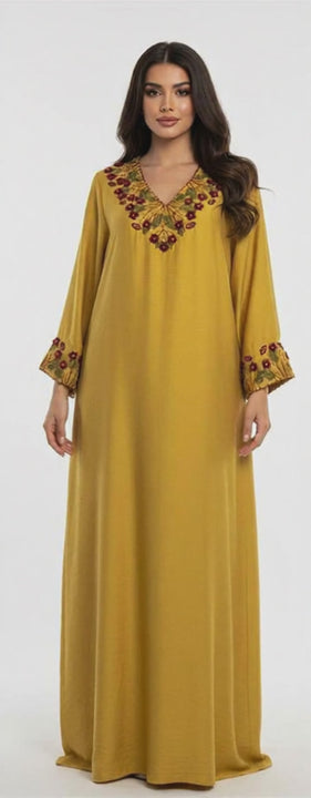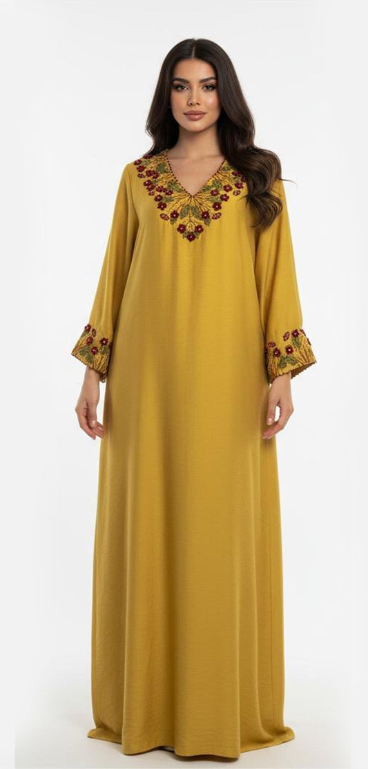 جلابيه مع شغل يدوي باز من الخيوط وخرز الشك القماش كريب حرير