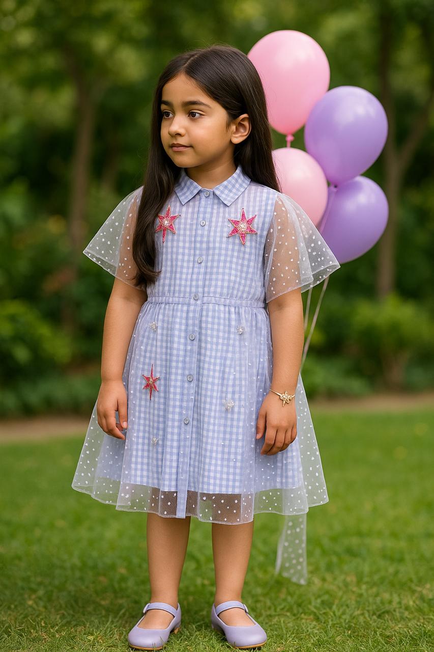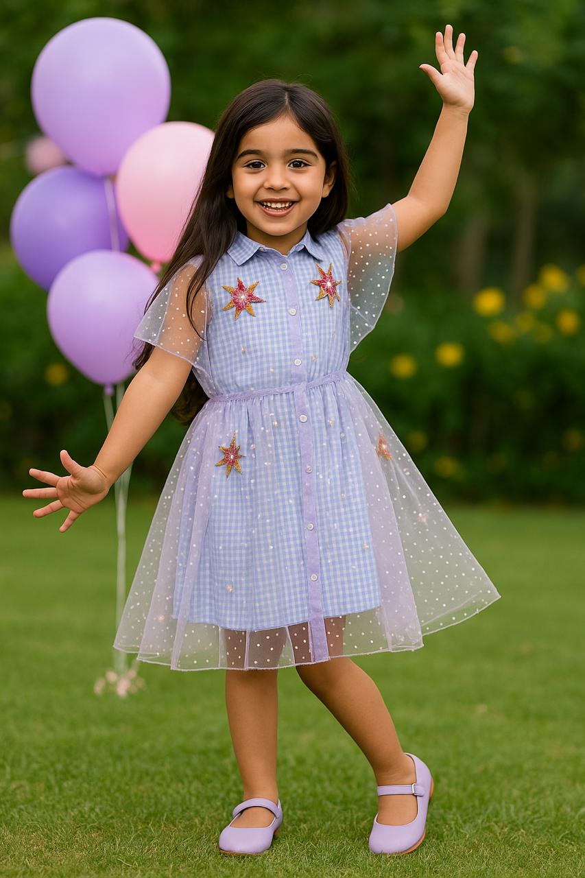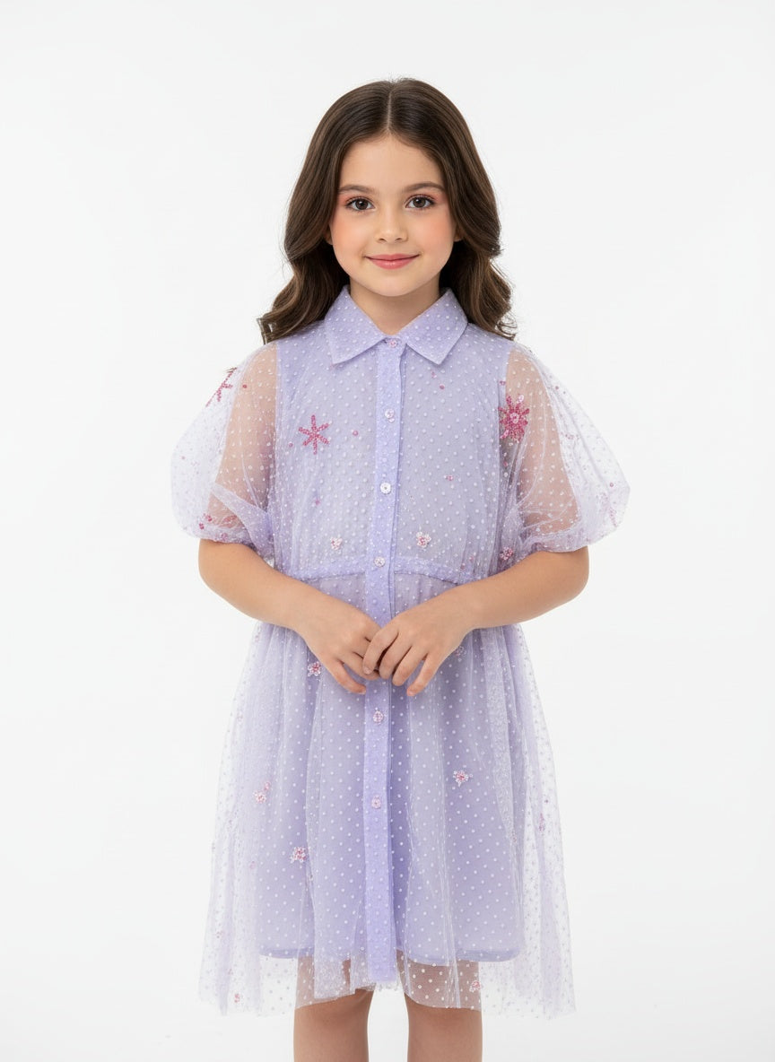 فستان من التول البنفسجي الرقيق المشكوك يدويا يناسب الصغيرات