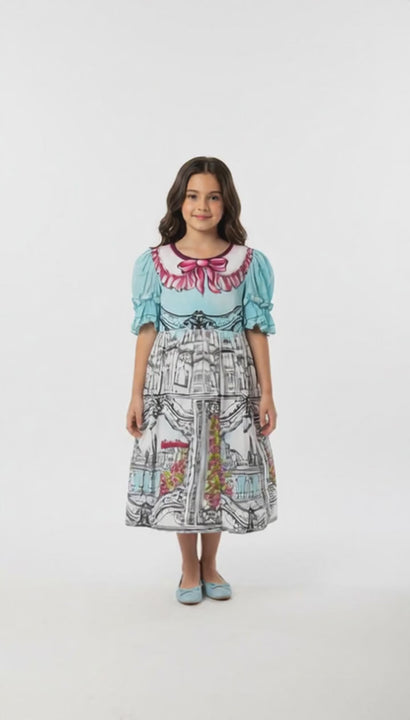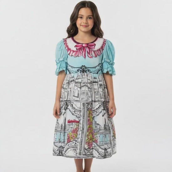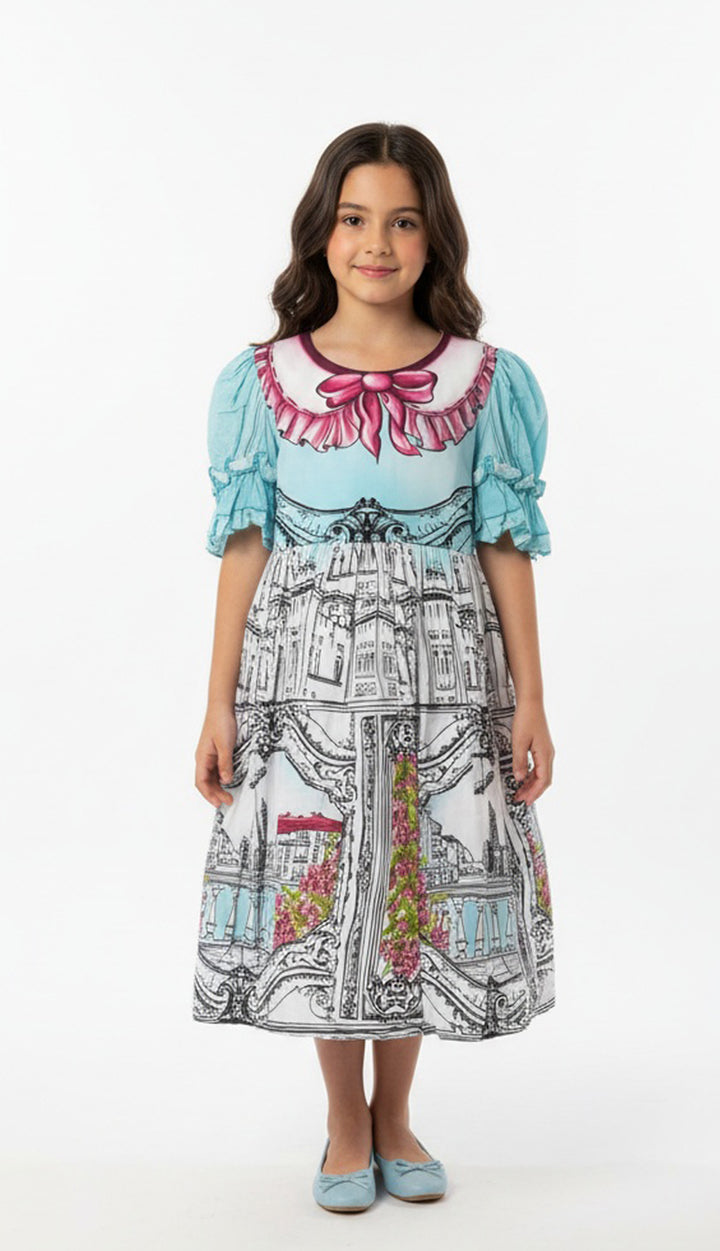 فستان وطني تمثل جزيرة الؤلؤه قطر برسوم خلابه