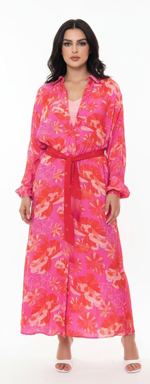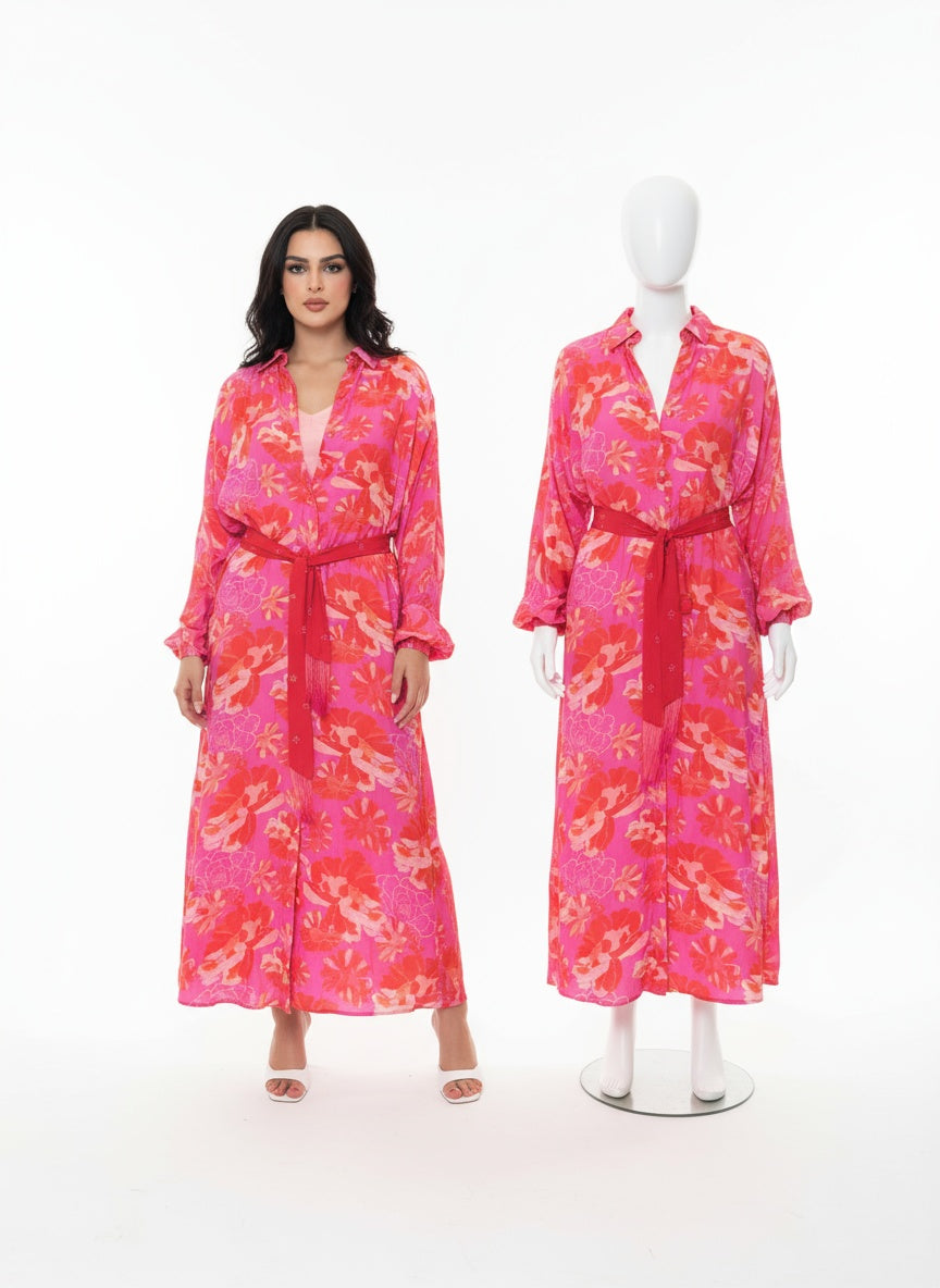 مجموعه من بلوزه او فستان طويل مع بدي وحزام مشكوك من قماش الحرير الياباني المطعم بالقطن