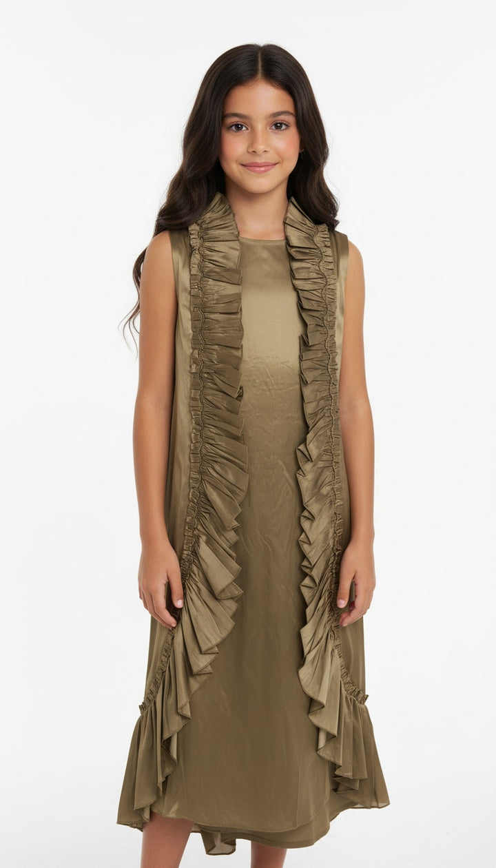 فستان من التفتا الذهبي مع شك يدوي رقيق كسلسله تزين الفستان