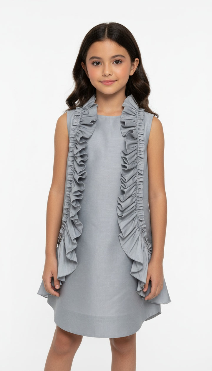 فستان من التفتا الرمادي مع شك يدوي رقيق كسلسله تزين الفستان