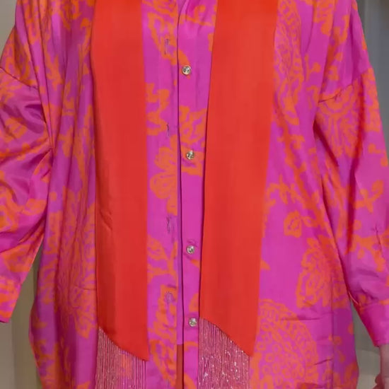مجموعه من بنطلون وبدي وبلوزه طويله جدا مع سكارف مشكوك اطرافه